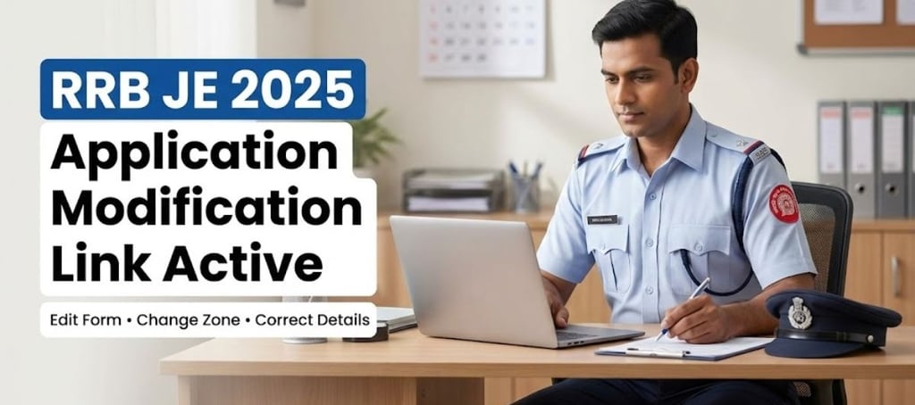 RRB JE Modification Link 2025 is now OPEN. Candidates can correct their application form, change RRB Zone (Jammu/Chennai), and update Photo/Signature till 22nd December. Direct login link inside.